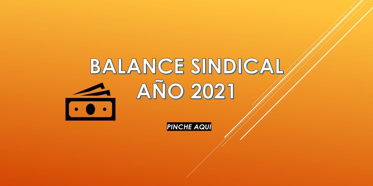 Estimados(as) socios(as) se entrega a ustedes el balance correspondiente al año 2021 sobre los ingresos y salidas de dinero en el año mencionado. Se expresa en este informe en se que se gastan los dineros contribuidos por cada uno de ustedes para mantener la transparencia de las gestiones de esta Directiva Sindical y mantenerlos a usted informados de las finanzas actuales de nuestro SINDICATO.